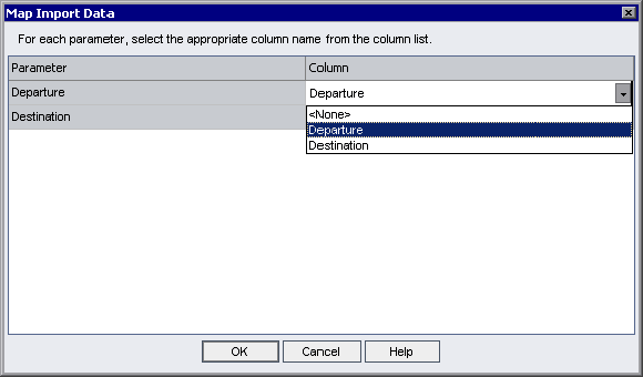 选择“映射参数”对话框后,您需要将文件中的列标题映射到组件中的参数。您必须为所有输入参数执行此操作。