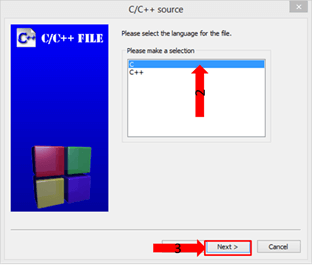 步骤 4) 要创建新文件,请选择“C”文件,然后单击“下一步”按钮继续。