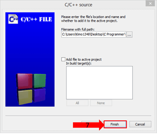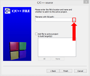 步骤 5) 通过单击“...”按钮设置文件路径,资源管理器窗口允许创建 C 文件。