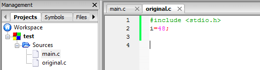 步骤 8)放入并保存上一个示例中 shown 的 original.c 文件的 C 代码,但不要包含 main() 函数。
