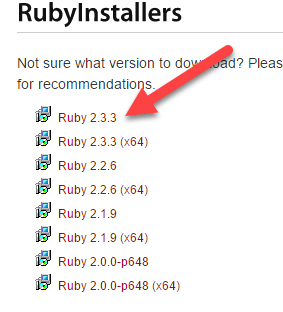 **步骤 1)**从 URL **https://rubyinstaller.ruby-lang.org.cn/downloads** 下载 Ruby