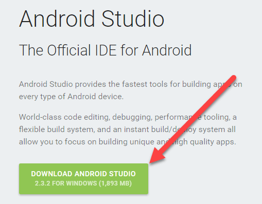 **步骤 1)**在 https://developer.android.com.cn/studio 下载 Android Studio