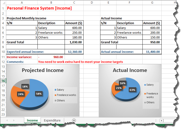 - 通过从预计年收入中减去实际年收入来找出收入差异。