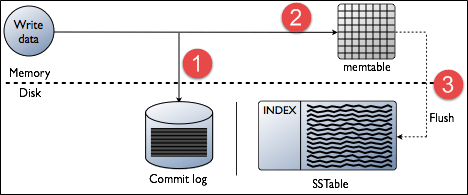 - 然后 Cassandra 将数据写入内存表。每次写入请求写入内存表的数据也会单独写入提交日志。内存表是临时存储在内存中的数据,而提交日志记录事务记录以供备份。