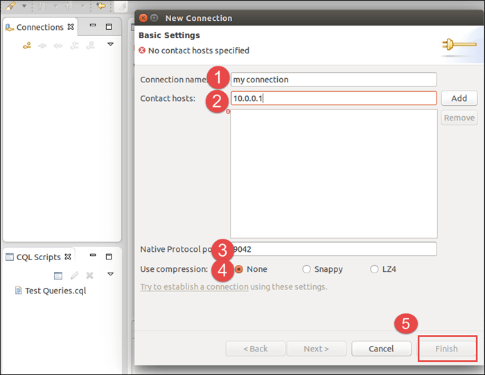 步骤 3) 创建与Cassandra Enterprise服务器的连接