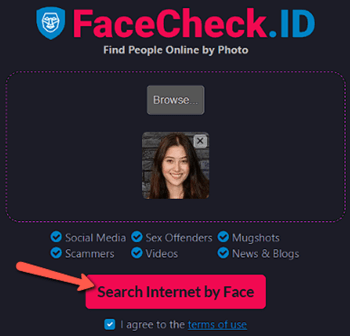 以下是如何使用 FaceCheck ID 进行图片反向搜索