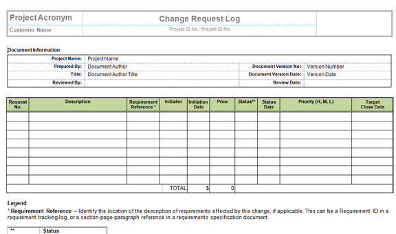 - 变更日志:变更日志是一份记录所有变更请求详细信息的文件,例如项目编号、PCR(项目变更请求)ID、优先级、所有者详细信息、目标日期、状态和状态日期、提交人、提交日期等。