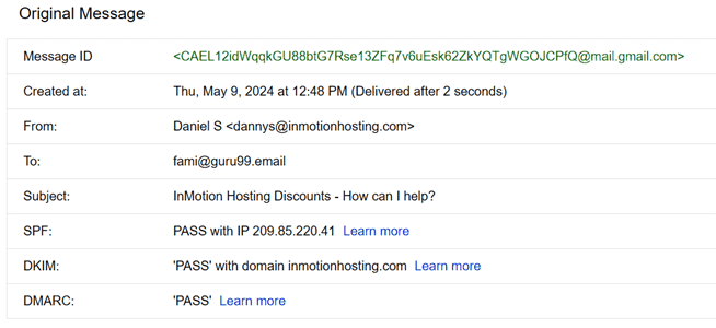 当您检查发件人的电子邮件标题时,您会找到他们的信息,例如他们的电子邮件和 IP 地址。我通常点击“详细信息”和“更多”,然后转到“显示原始内容”,它会显示如下所示的信息。
