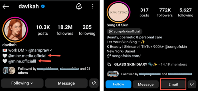 - Instagram:在 Instagram 上找到电子邮件要容易得多。您可以转到他们的个人资料,查看他们的简介;如果简介中未直接提供,请转到简介下方的“联系方式”选项。在这里,您将找到他们的电子邮件地址或联系电话。