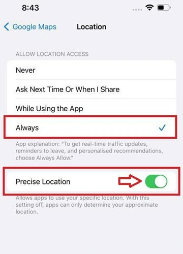 但是,如果您决定保持启用状态,请点击“精确位置”旁边的切换按钮,以帮助您提供具体位置。