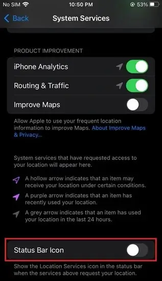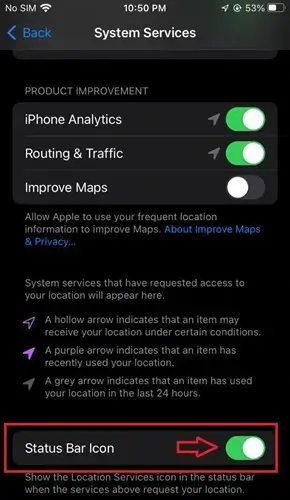 如果您允许多个服务访问您的 iPhone 位置记录,您可能想知道何时有应用程序正在访问它。为了提高用户透明度,Apple 提供了一个状态栏图标功能,可让您知道何时以及哪些应用程序正在查看 iPhone 位置记录。