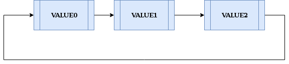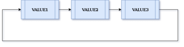 下面是包含 3 个节点的循环链表的示意图。
