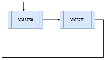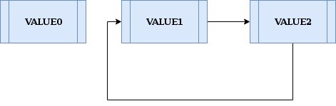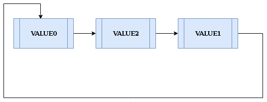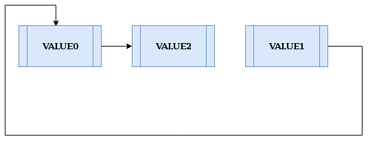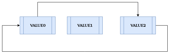 例如,让我们在值为“VALUE0”的节点之后插入“VALUE2”。假设起始点是值为“VALUE0”的节点。