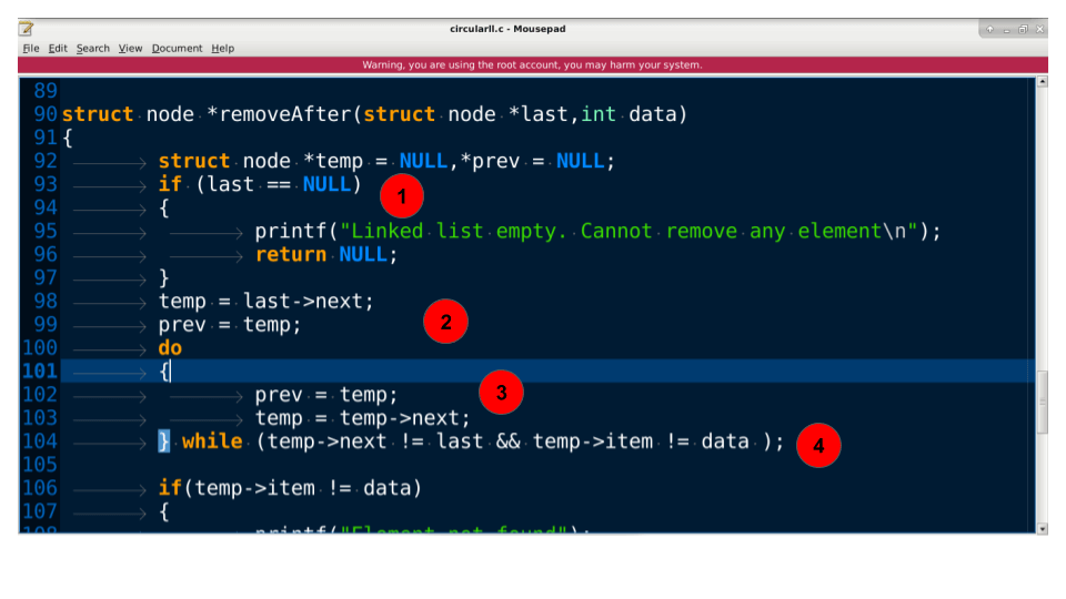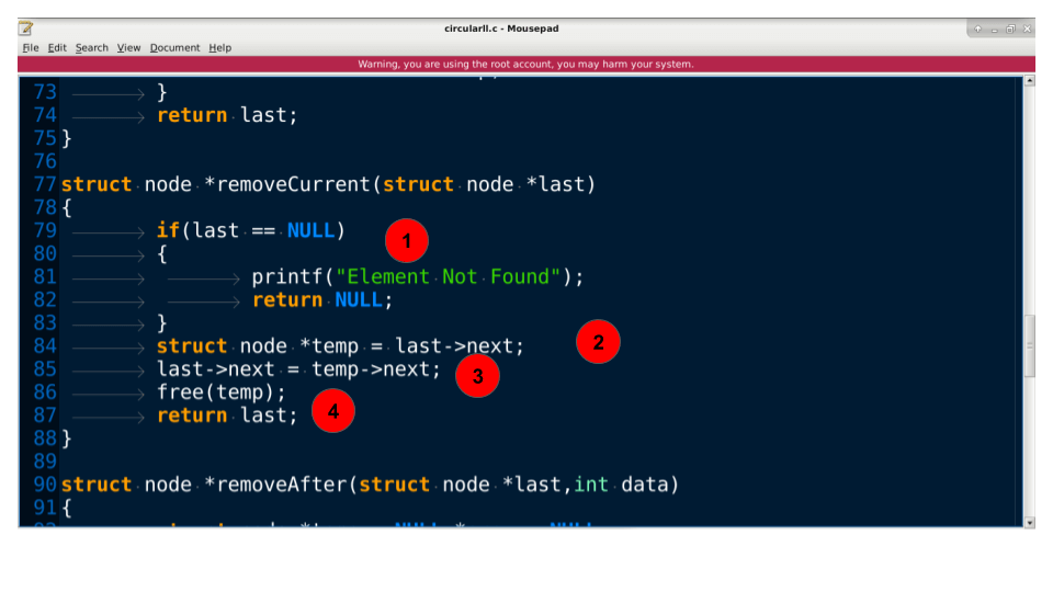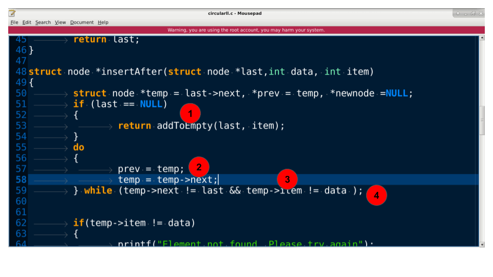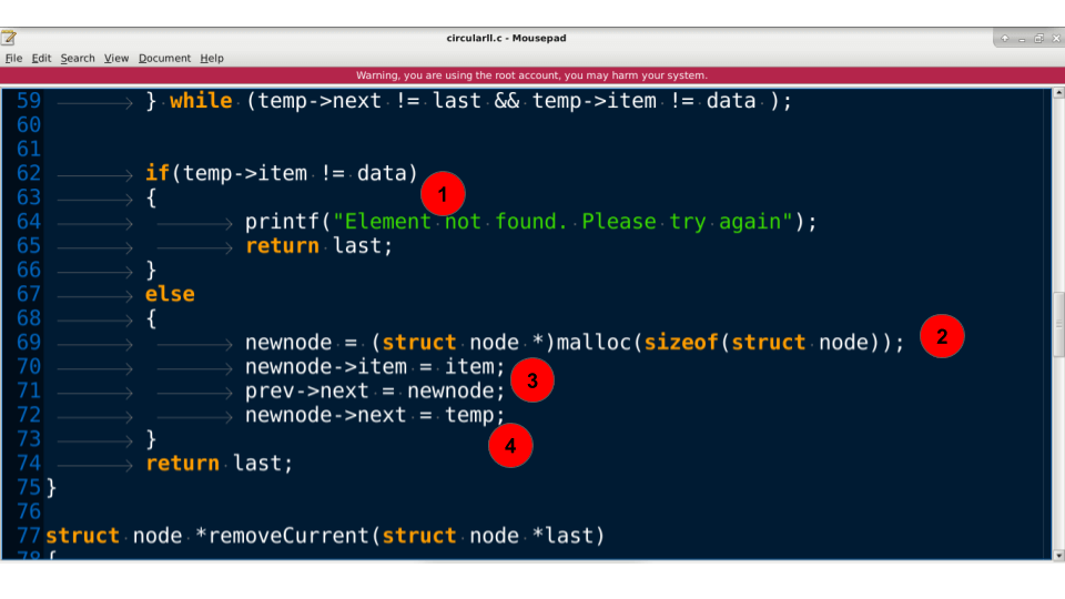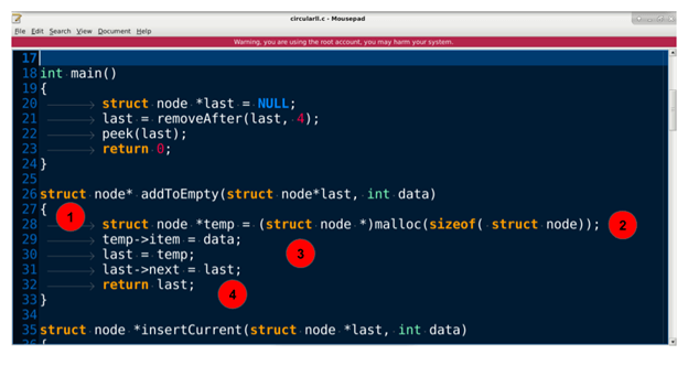 - 这确保了元素被放置在循环链表中的特定节点之后。返回到调用者。