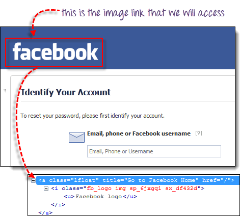 在下面的示例中,我们将访问 Facebook 密码找回页面左上角的“Facebook”标志。
