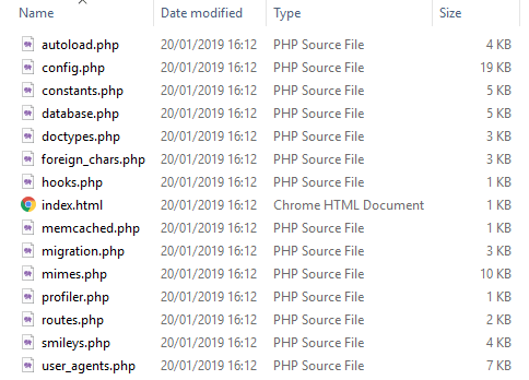 - memcached.php – 如果您将CodeIgniter与Memcached一起使用,则可以使用此文件进行配置。