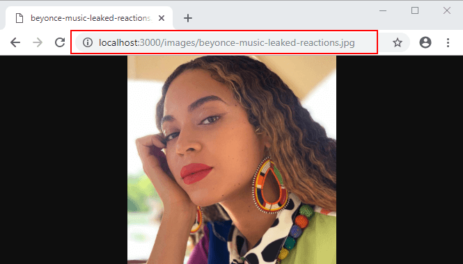 请注意,上传的图片名称显示在 URL 中。我们从上传的图片元数据中获取了图片名称