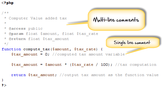 下图显示了一个同时包含多行注释和单行注释的 PHP 文件
