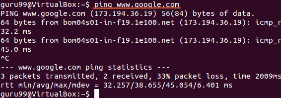 在这里,一个系统向 IP 地址(172.16.170.1)或主机名(www.google.com)发送了 64 字节的数据包。如果即使有一个数据包未返回或丢失,也表明连接存在错误。通常,互联网连接就是这样检查的。
