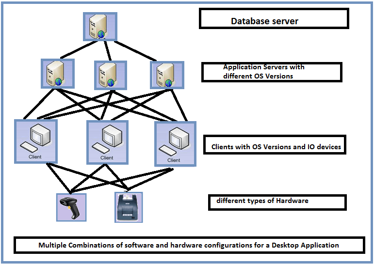 一般来说,桌面应用程序将是两层或三层架构,这里我们将考虑一个使用Asp.Net开发的三层桌面应用程序,它包含客户端、业务逻辑服务器和数据库服务器,其中每个组件都支持以下平台。