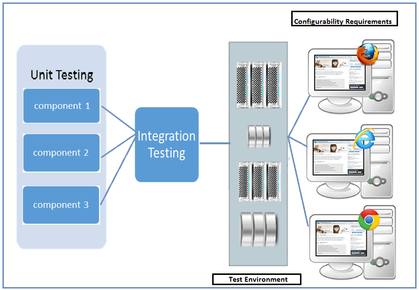 假设有一个银行应用程序,它必须在多个浏览器中进行兼容性测试,当应用程序托管在所有先决条件都存在的环境中时,它可能会通过测试实验室中的单元和集成测试。