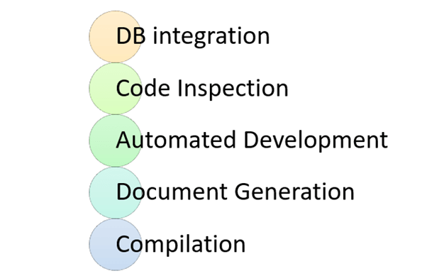 - 持续集成的重要活动是 1) 数据库集成,2) 代码检查,3) 自动化部署,文档生成和编译。