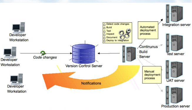 后来,他们采用了持续集成方法。一旦开发人员提交代码,软件就会立即构建和测试。如果检测到任何错误,相应的开发人员可以快速修复缺陷。