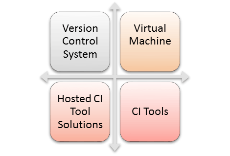 - CI 的重要元素是 1) 版本控制系统 2) 虚拟机 3) 主机 CI 工具解决方案 4) 工具