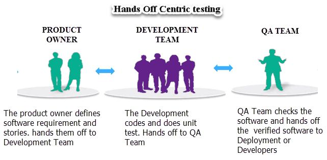 - 旧的测试方式是以移交为中心。软件从一个团队移交到另一个团队