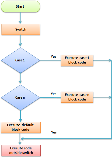 下面的流程图说明了 switch 控制结构的工作原理。