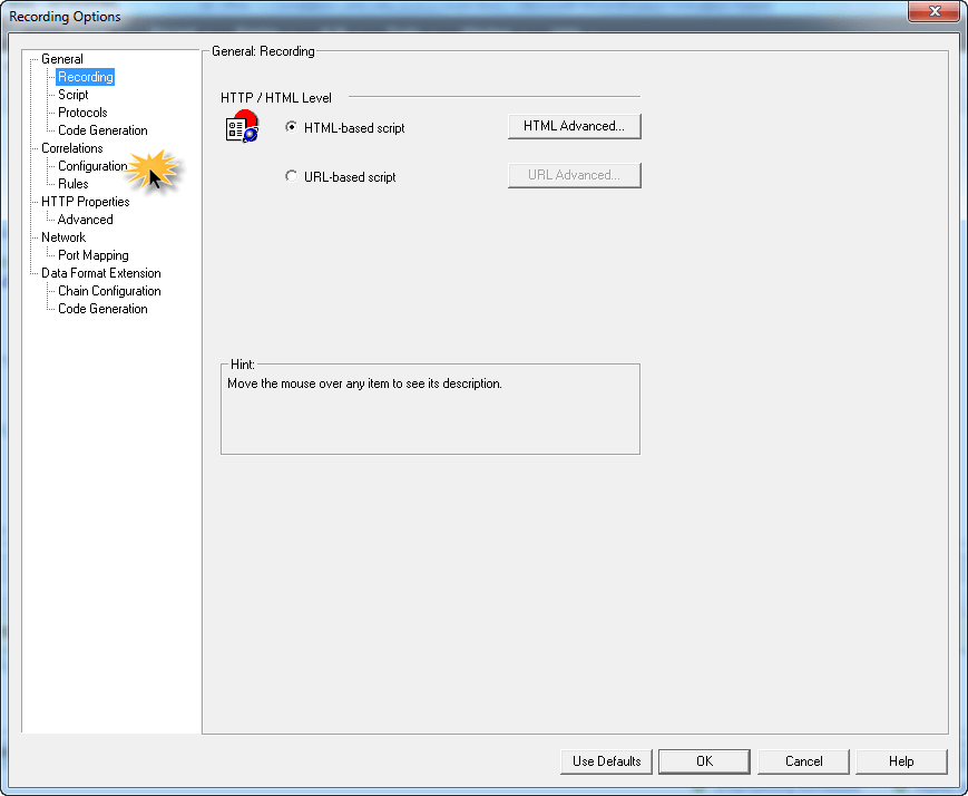 要在录制时配置自动关联,请在录制脚本后在录制时间设置中执行以下配置。