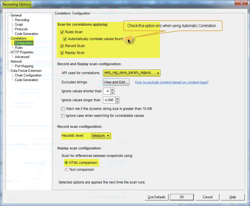 为了使自动关联生效,您需要确保“规则扫描”已勾选。如果您点击“自动关联找到的值”,VUGen 在找到关联候选项时不会提示您选择,而是直接关联它们。