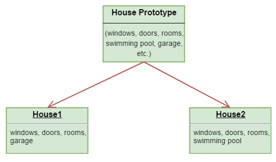 在上图中,我们有一个房屋原型。基于此原型,我们创建了两栋具有不同特征的房屋。