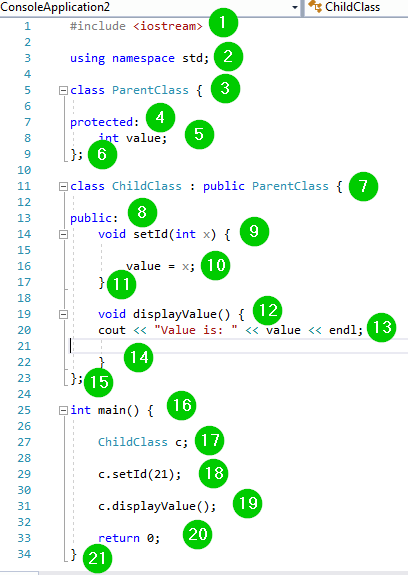 - 使用上述类实例和 setId() 函数将值 21 赋给变量 x。