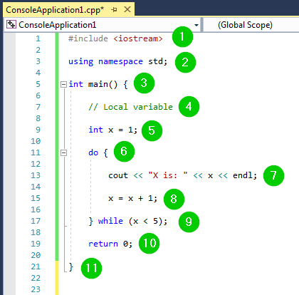 - 如果测试表达式为 true,C++ 编译器将执行 do-while 循环的循环体。