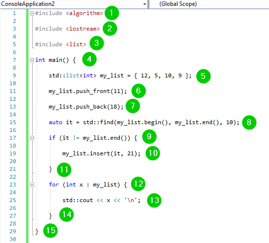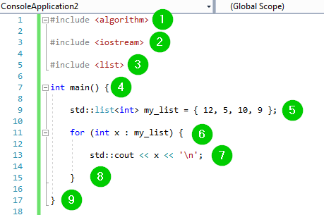 std::list<int> my_list = { 12, 5, 10, 9 };