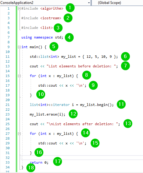 - 要从 std::list 中删除项目,我们使用 erase() 函数。