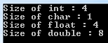 - 使用sizeof运算符确定浮点数据类型的大小,并在控制台上打印它以及其他文本。