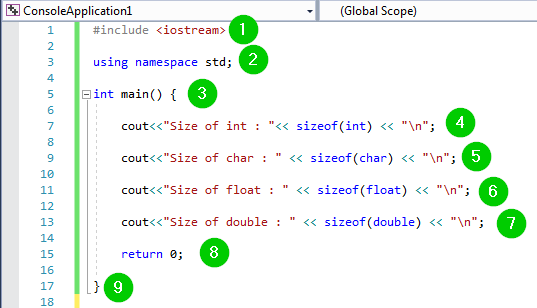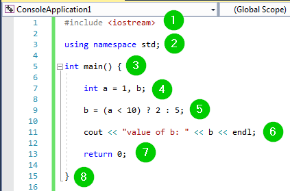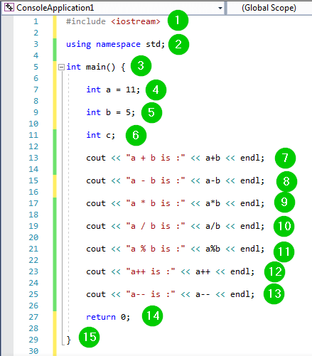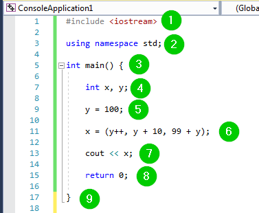 - 在我们的代码中包含 iostream 头文件。它将允许我们从控制台读取和写入。