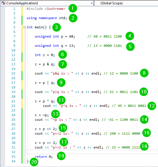 cout << "p&q is : " << z << endl; // 12 = 0000 1100