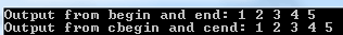 - vector::cend(): 它与 vector::end() 相同,但不能修改 vector 元素。