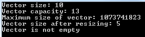 cout << "Vector size after resizing: " << vector1.size() << endl;