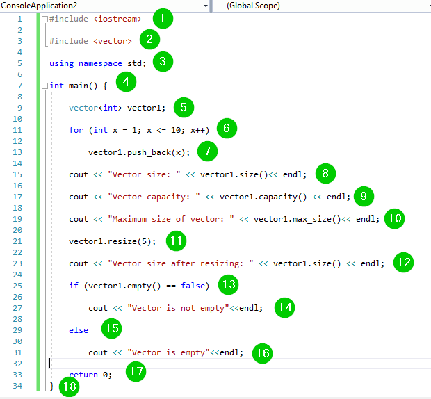 - 在我们的代码中包含 vector 头文件以使用其函数。