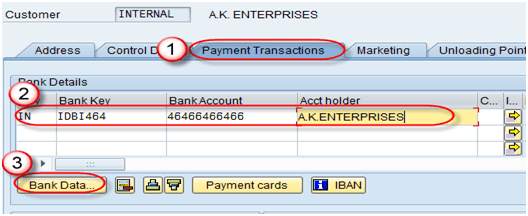 - 要输入更多银行详细信息,请点击银行数据按钮。