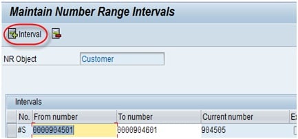 现在我们创建客户编号范围。点击“间隔创建”按钮。