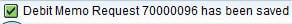 显示消息“借项通知单请求 700000 已保存”。