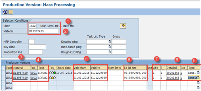 - 检查任务列表路由是否存在于生产版本的有效期(2015 年 1 月 1 日 – 9999 年 12 月 31 日)和批次范围(0 – 99999999)中。
