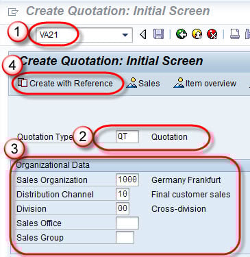 以下演示将创建参考询价的报价。创建报价的事务代码:VA21