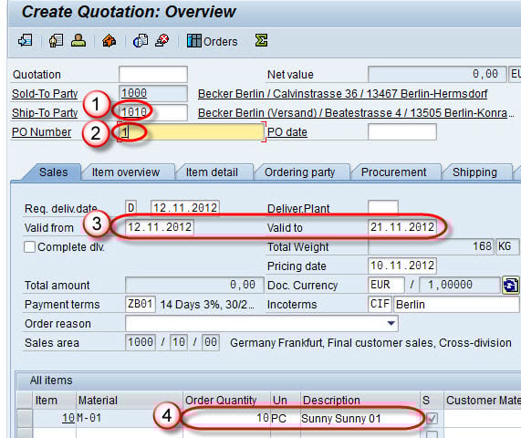 如何创建报价:SAP VA21