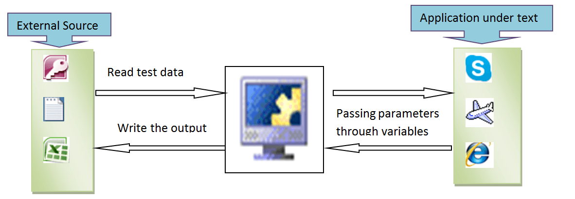 然而,在 DDF 中,脚本被编写用于参数化。当 AUT 的功能必须使用多个输入进行测试并捕获相应的输出时,这种框架非常有用。这些输入可以从外部文件(如数据库、Excel、Outlook、文本文件等)读取,相应的输出则写回到相应的外部源。